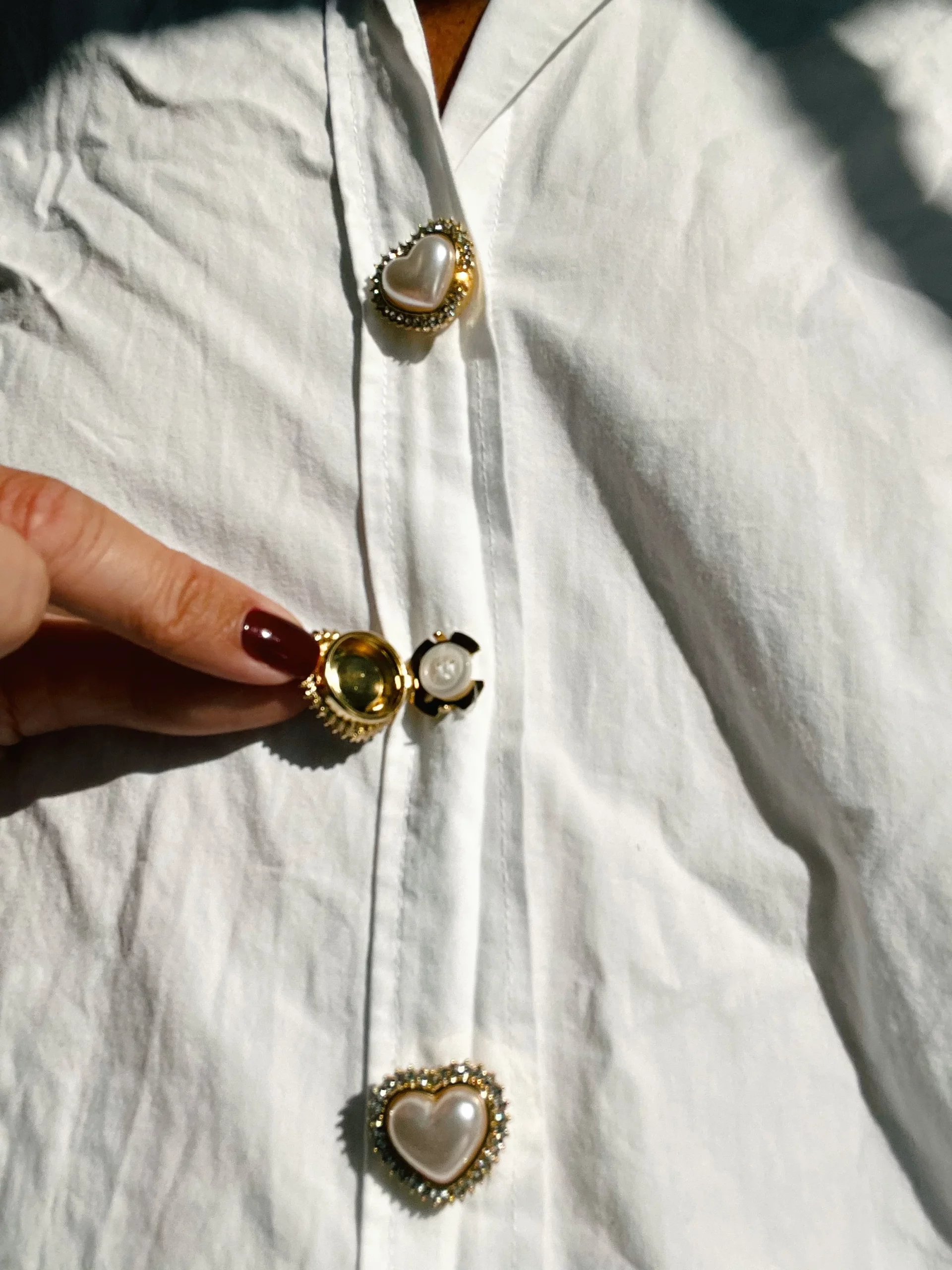 Sätt Button Charms på skjortor, koftor eller jackor. Fäst en vid kragen som halssmycke, eller på ärmsluten som fejkade manschettknappar.