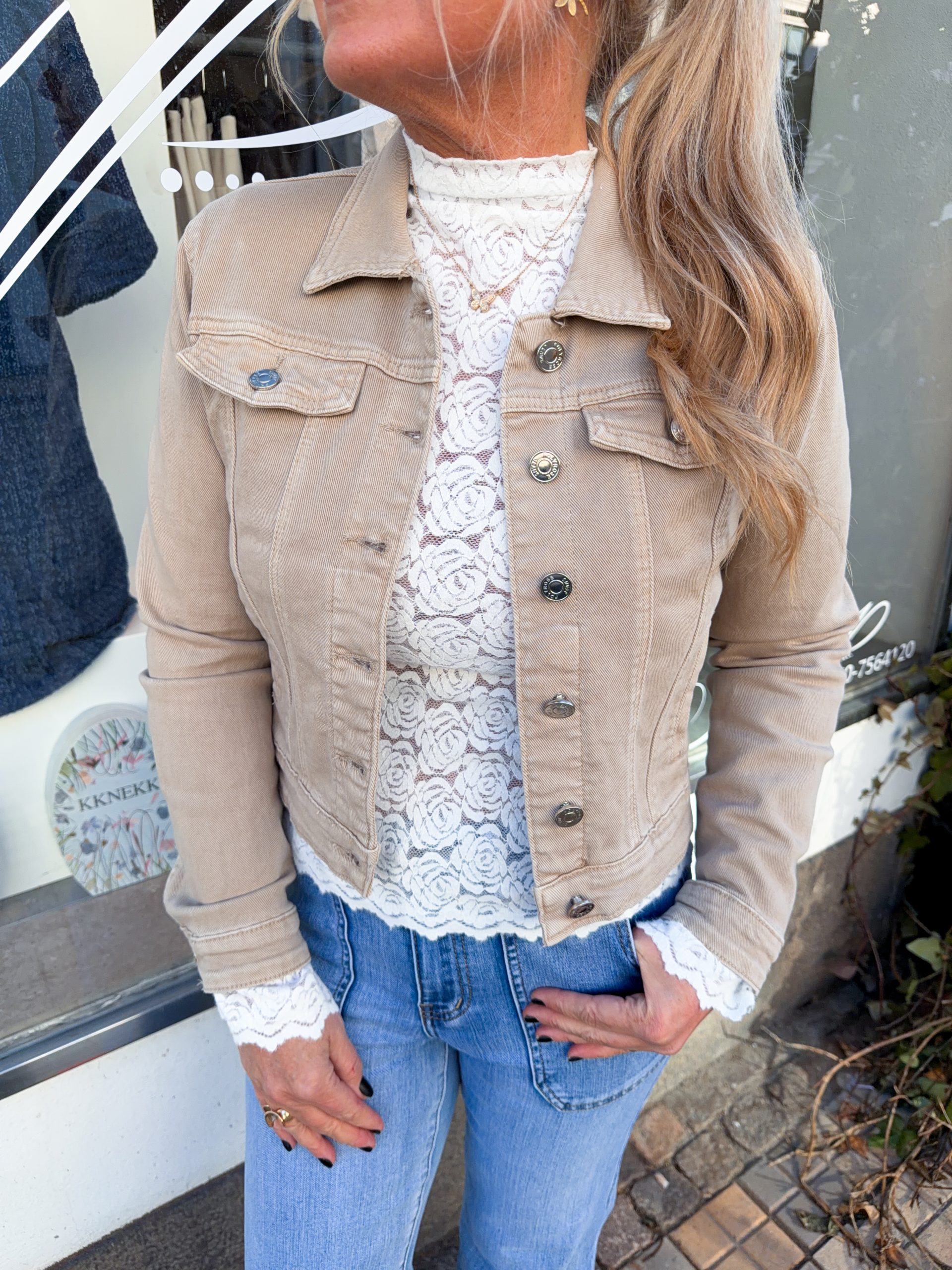 En supersnygg jeansjacka i en kortare modell. Modellen är 167cm lång och bär storlek M.