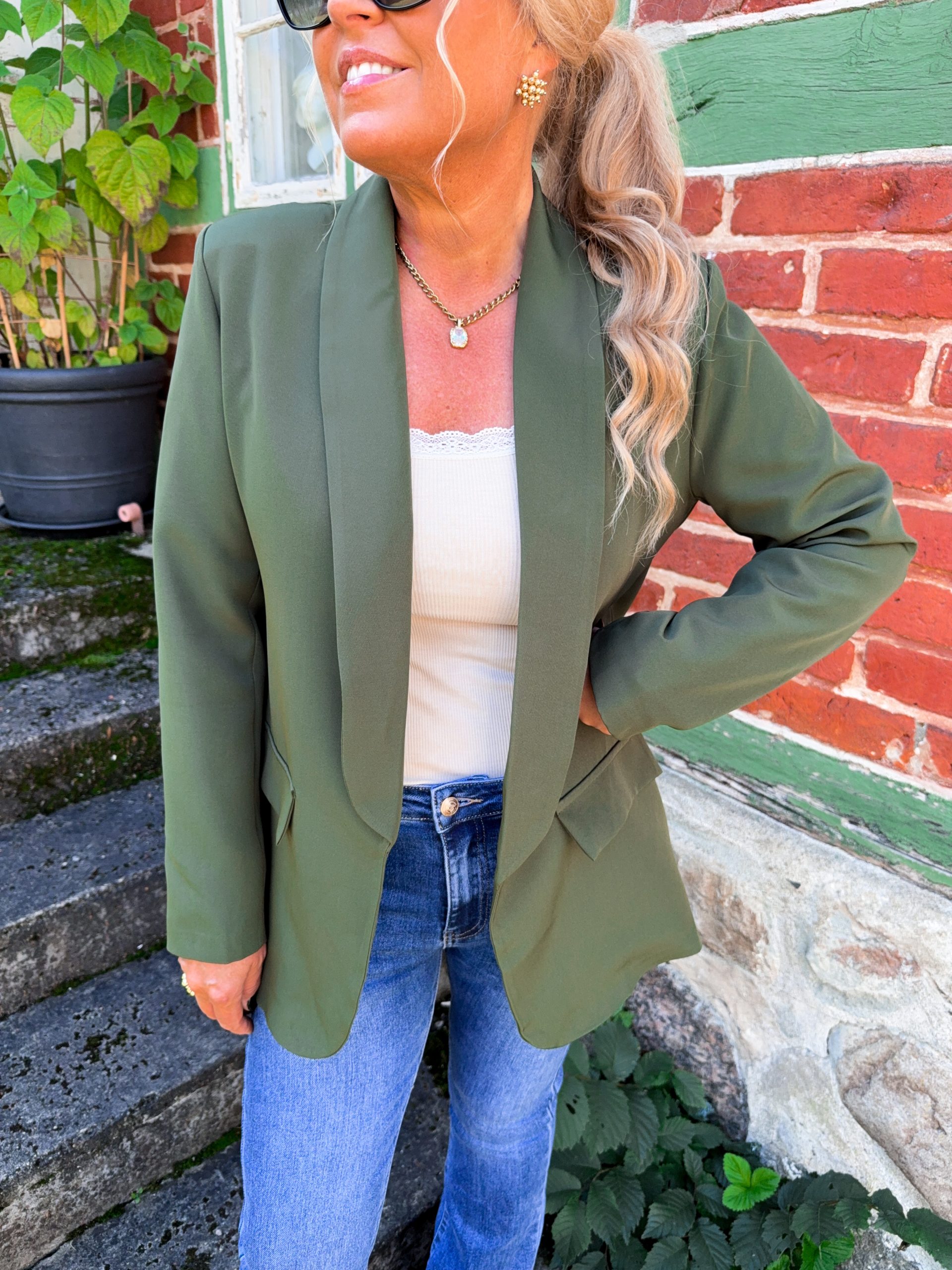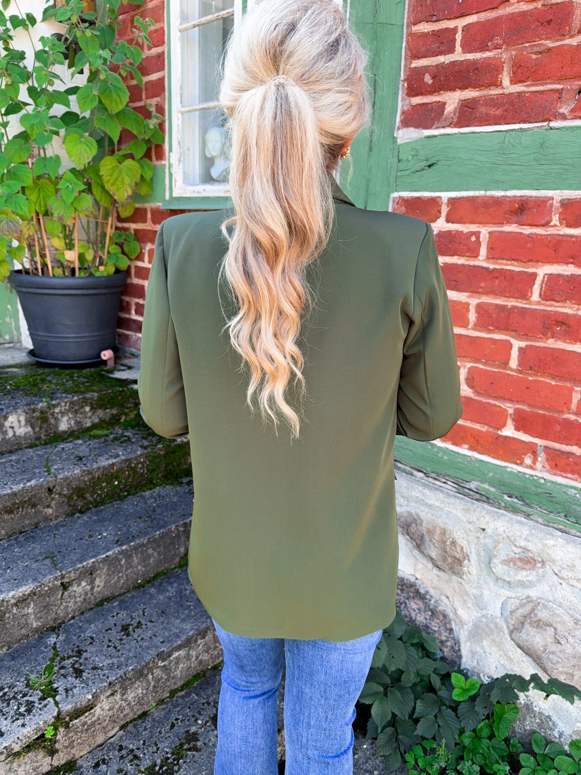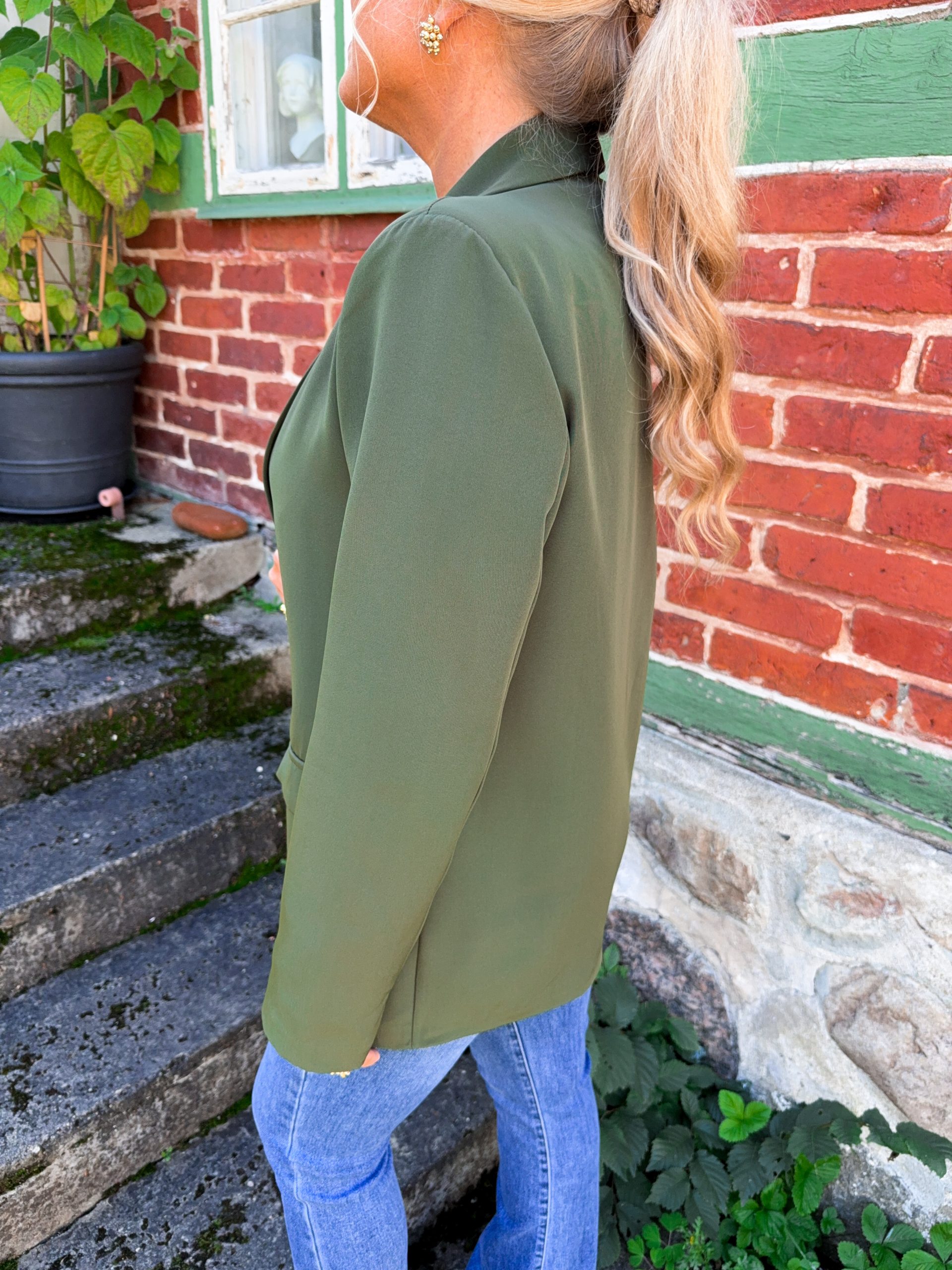En snygg kavaj med lätt vaderade axlar och fuskfickor. Modellen är 167cm lång.