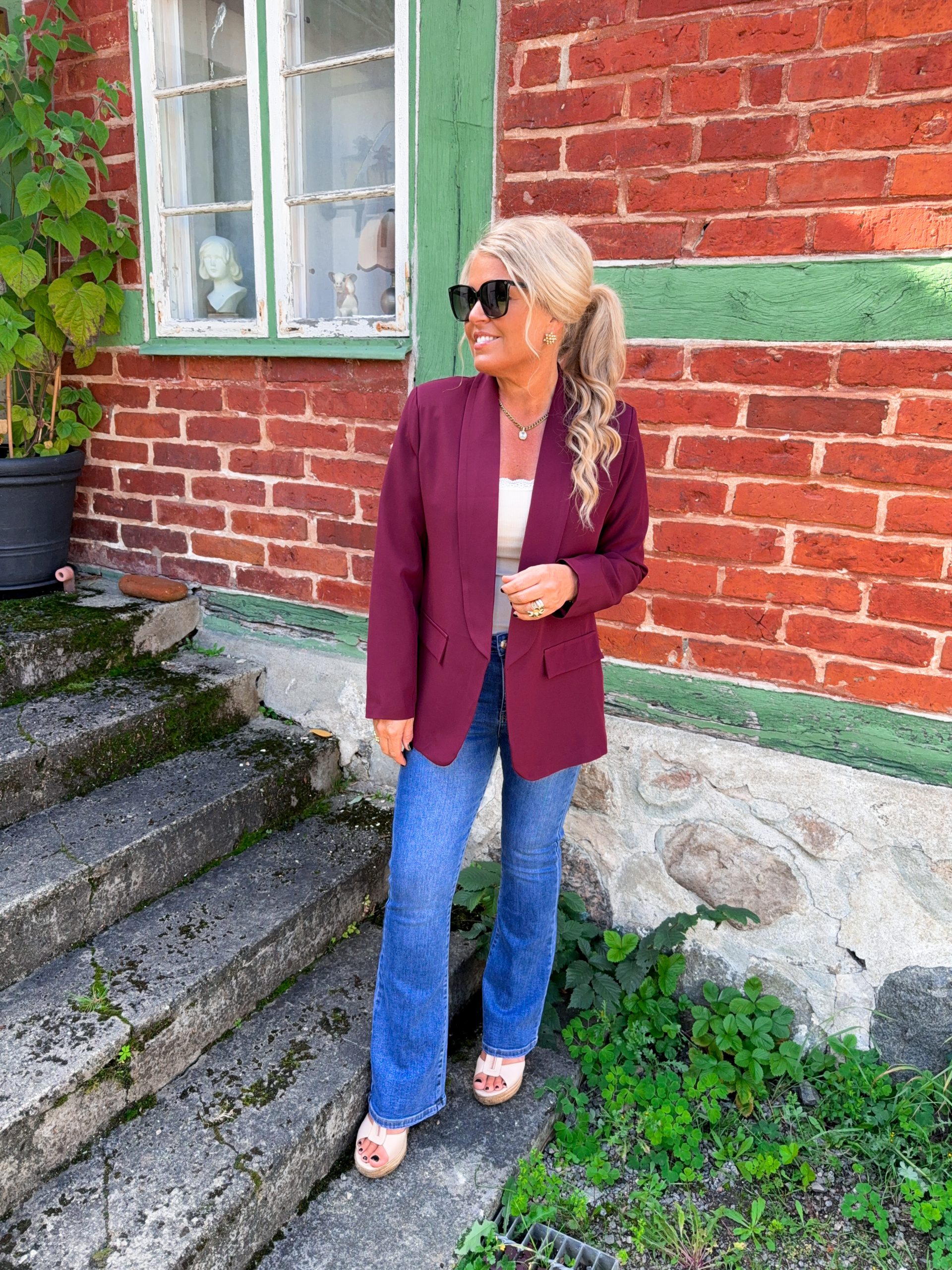 En snygg kavaj med lätt vaderade axlar och fuskfickor. Modellen är 167cm lång.