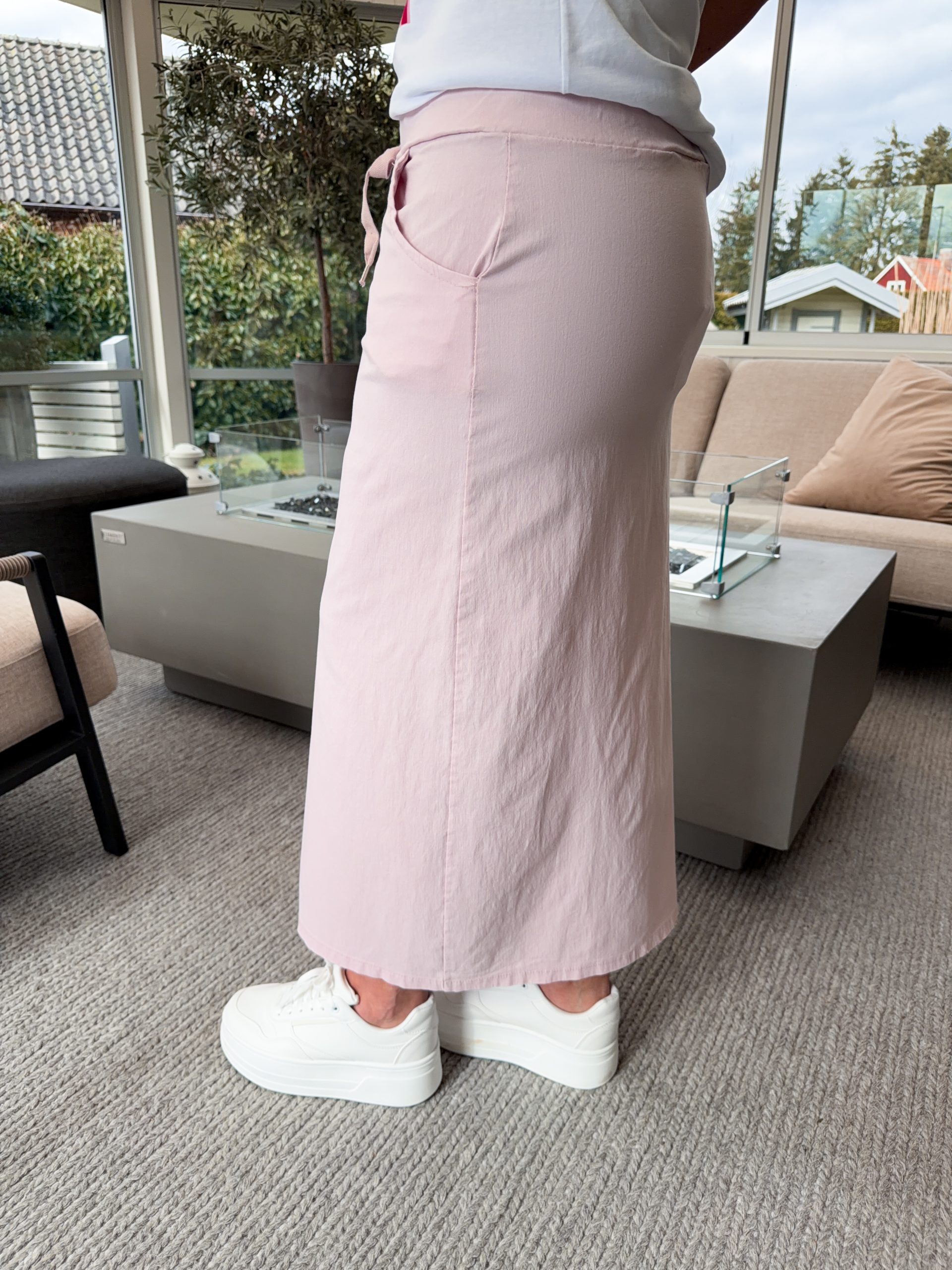 Mirkelkjolen! Så galet stretchig och skön. Resår och knyte i midjan. Sprund framtill. Jana är 167cm lång.