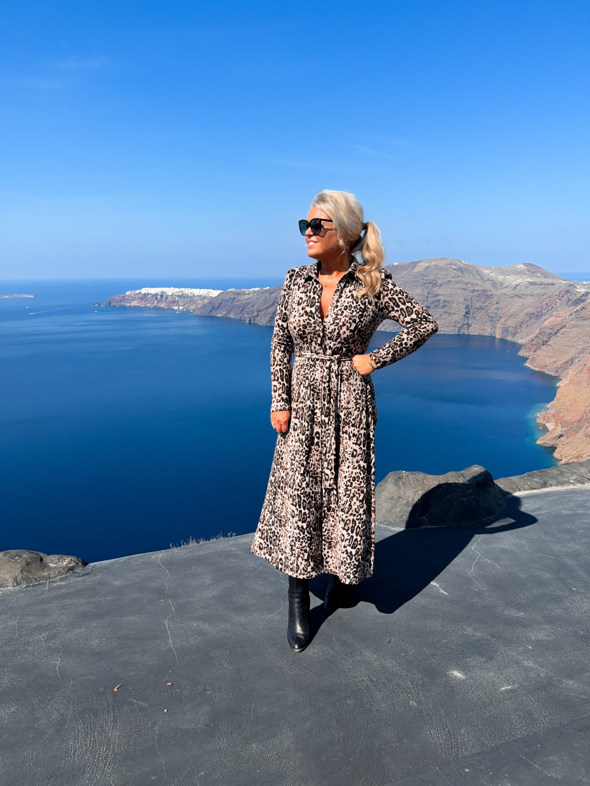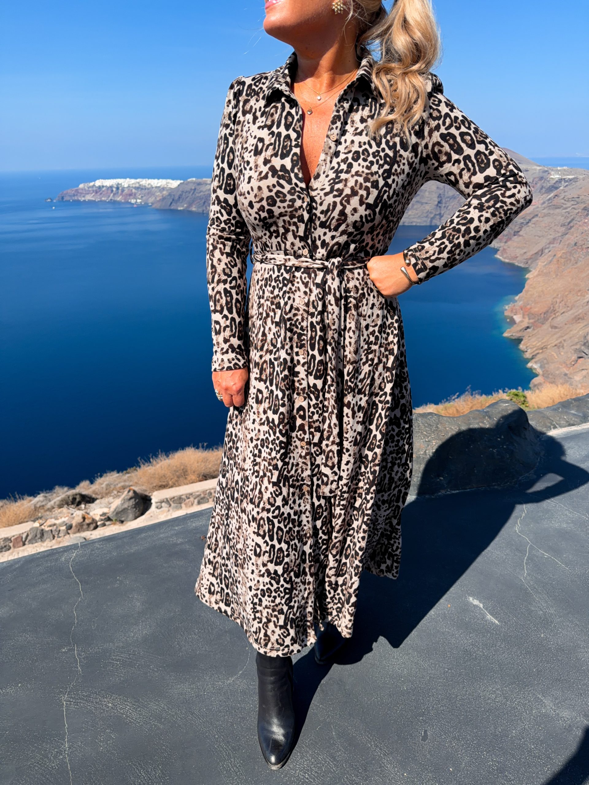 En mjuk och härlig skjortklänning i leopard med knytband i midjan. Modellen är 167cm lång och bär storlek S.