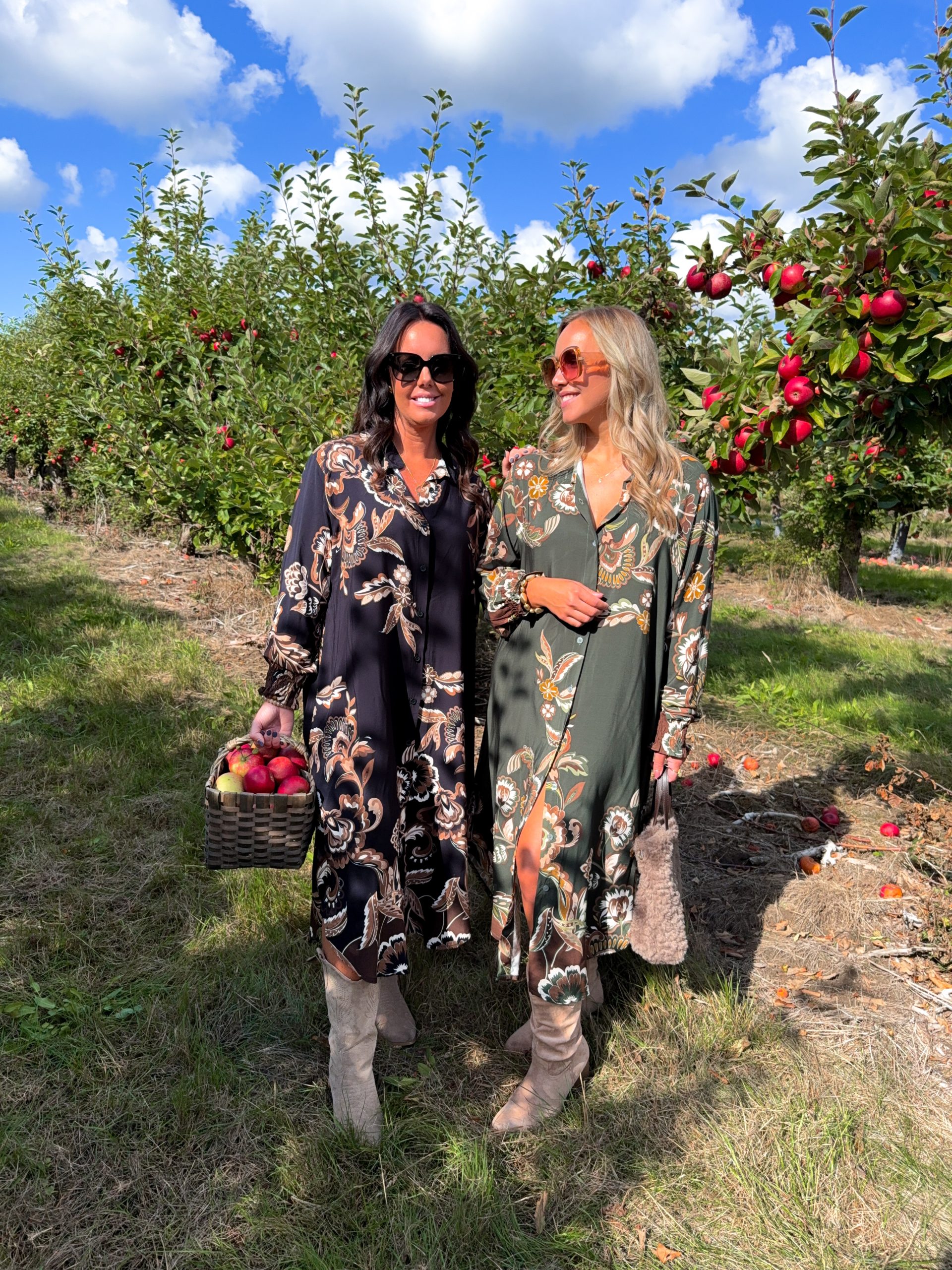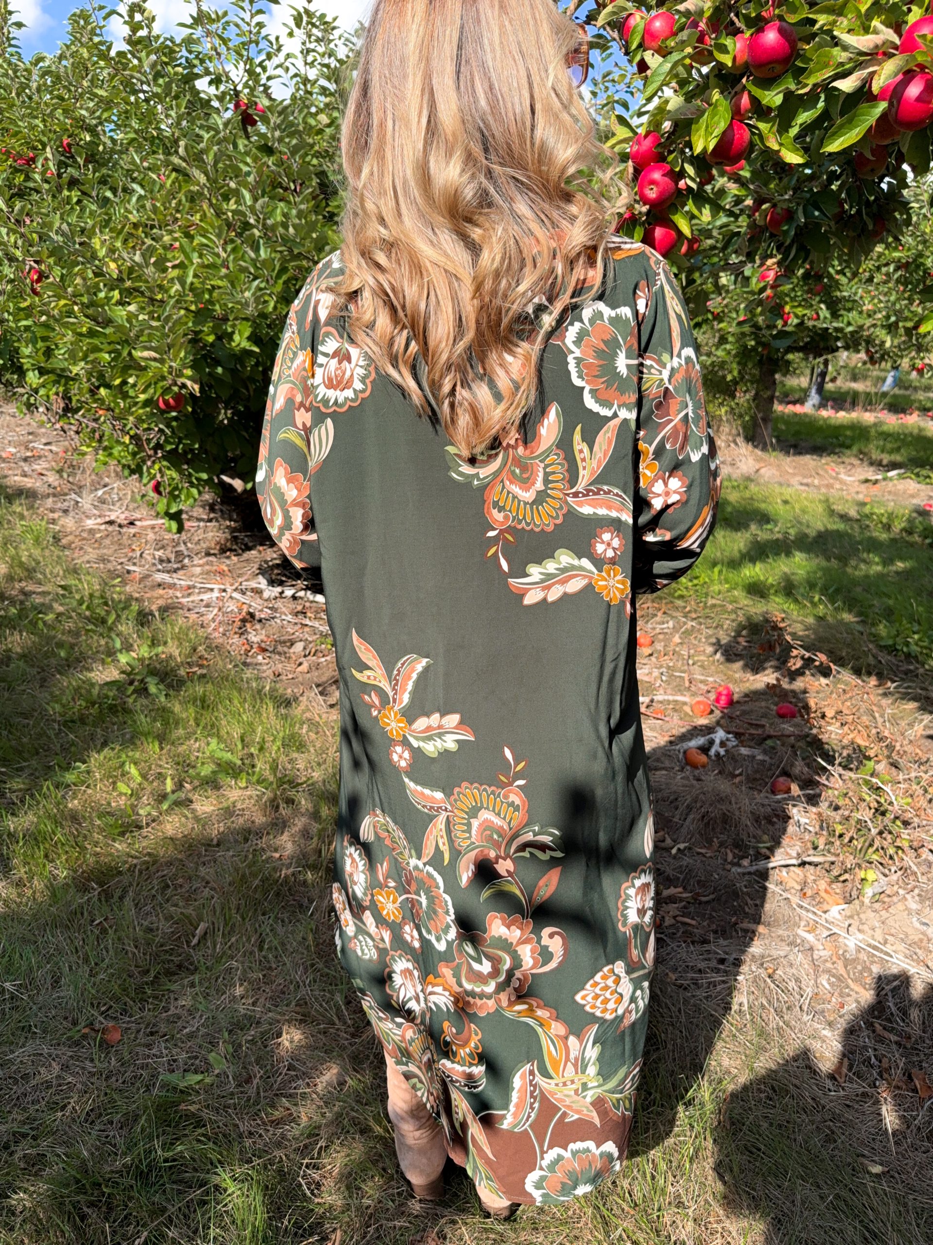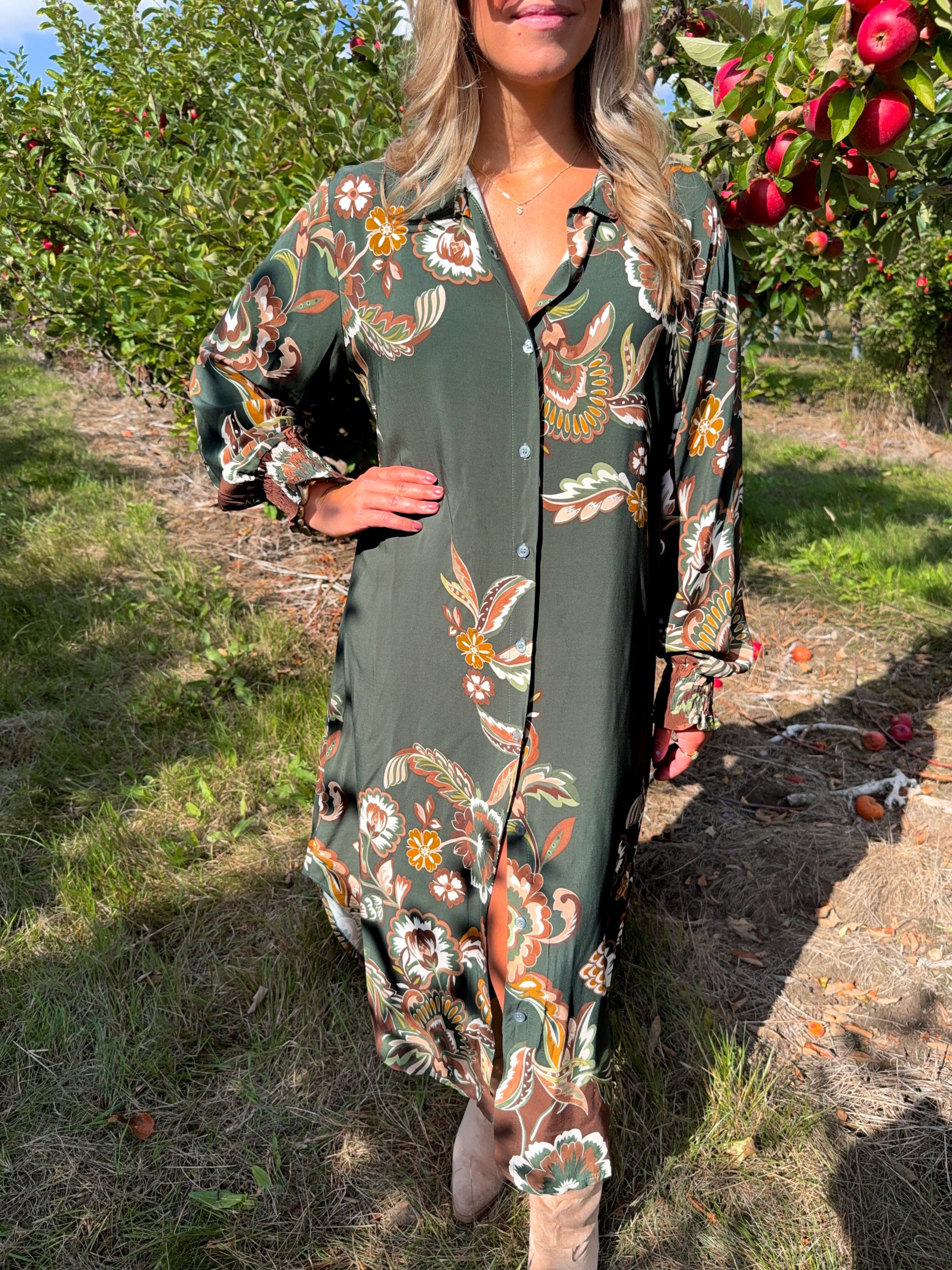 En mönstrad härlig skjortklänning i viskos Från Gemini. Modellen är 165cm lång.