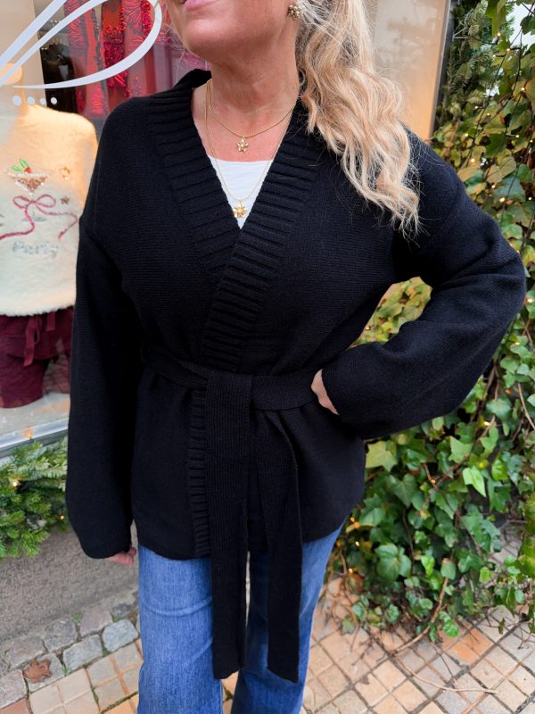 En gosig stickad kofta med avtagbart bälte i midjan. Modellen är 167cm lång.