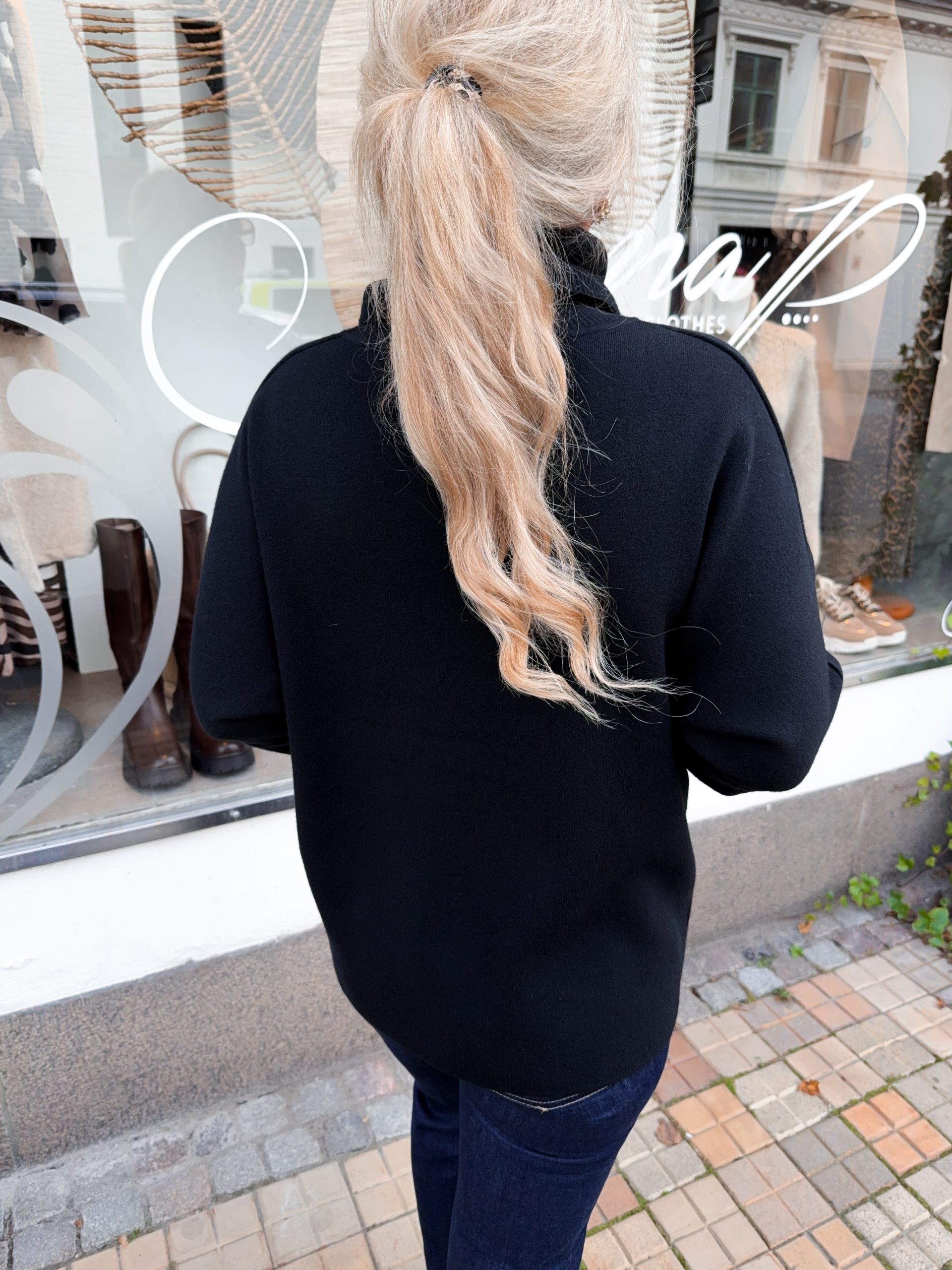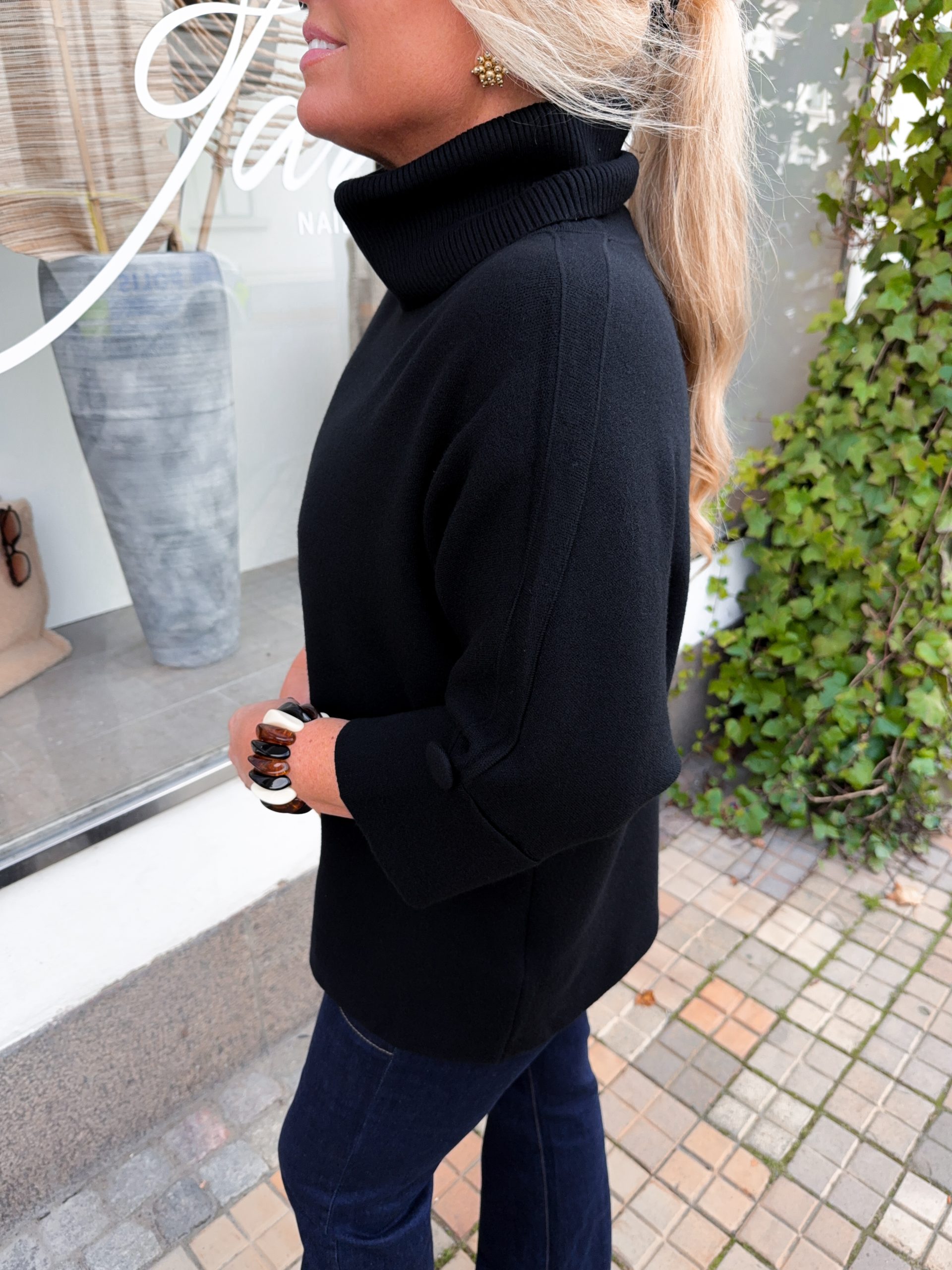 En snygg finstickad polotröja med 3/4 ärm. Modellen är 167cm lång.