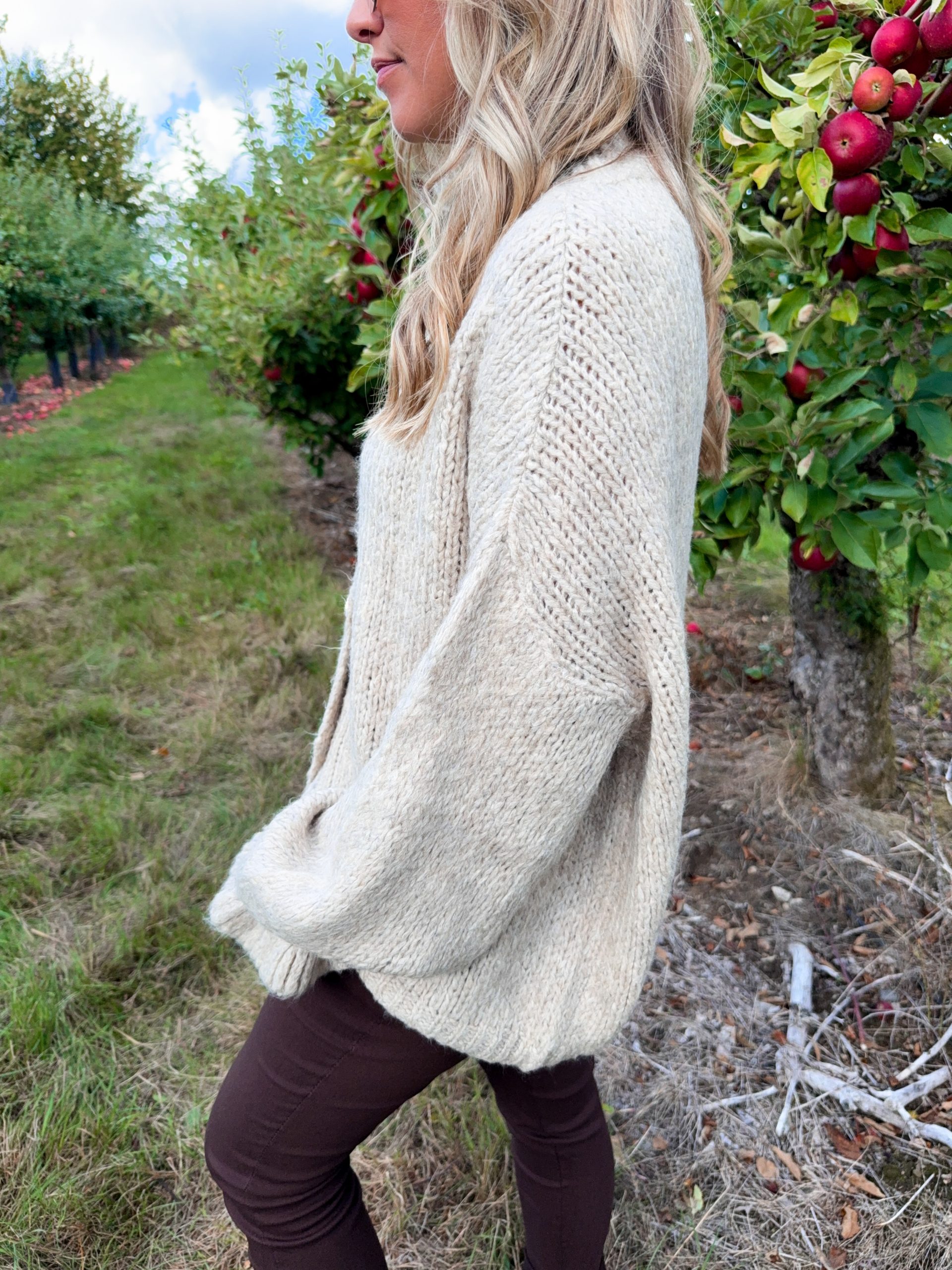 En supergosig stickad kofta med volang på krage och ärmslut. Från Gemini. Modellen är 163cm lång.