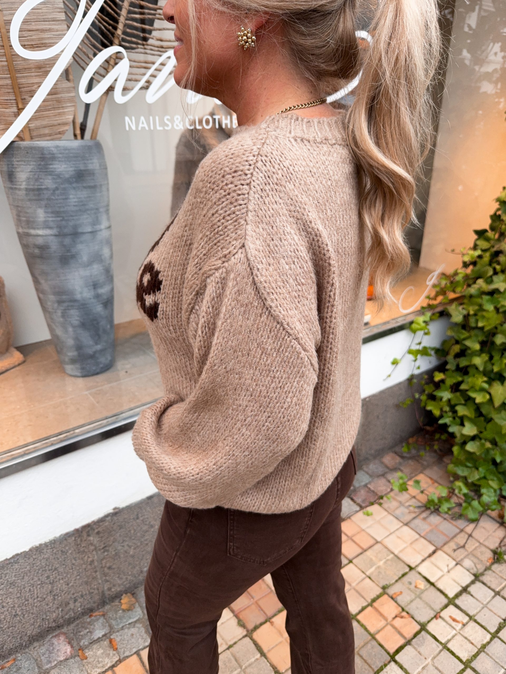 Brun Stickad Topp – Guldbroscher