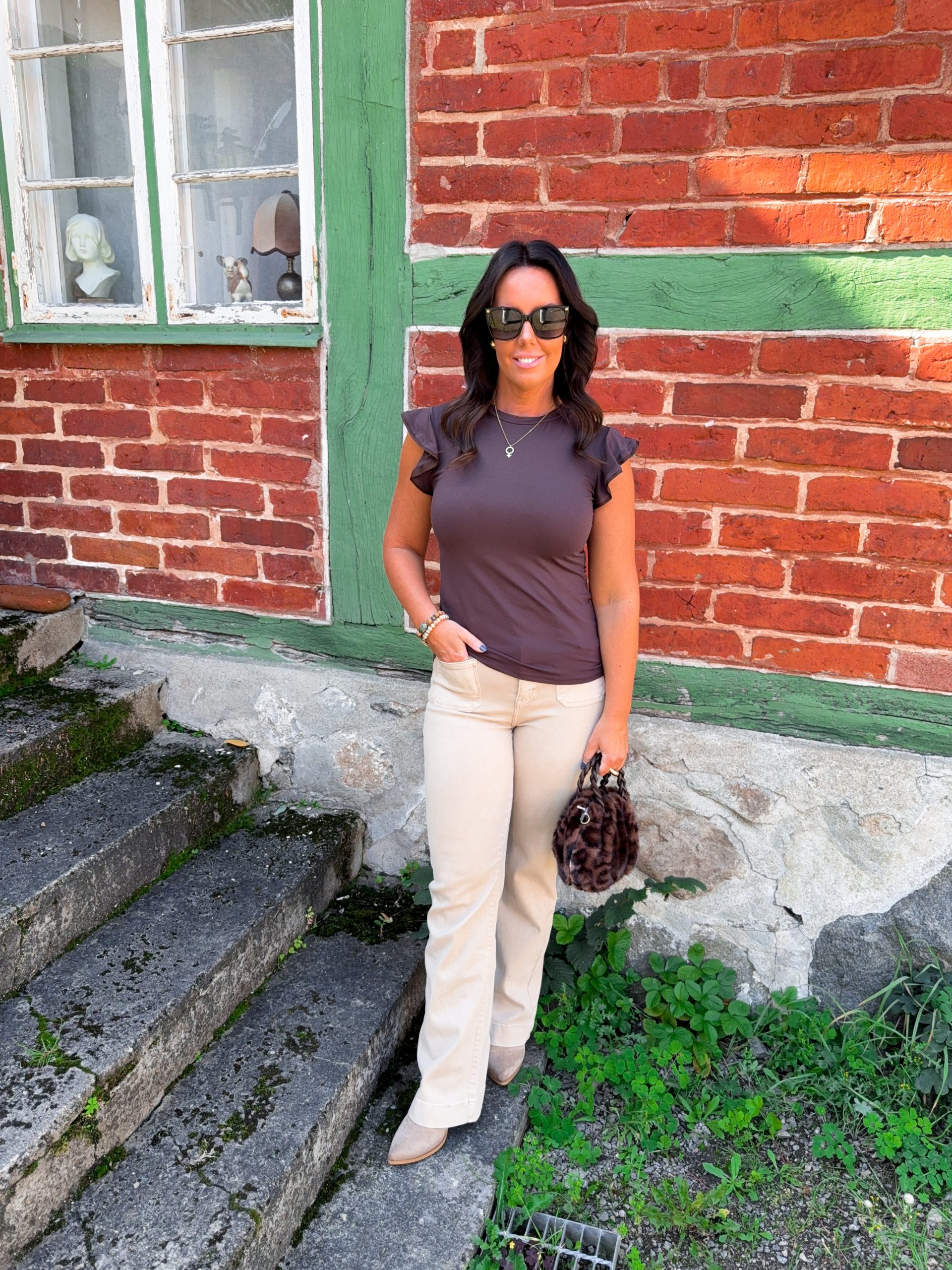 En stretchig topp med volangärmar. Från Gemini. Modellen är 165cm lång.