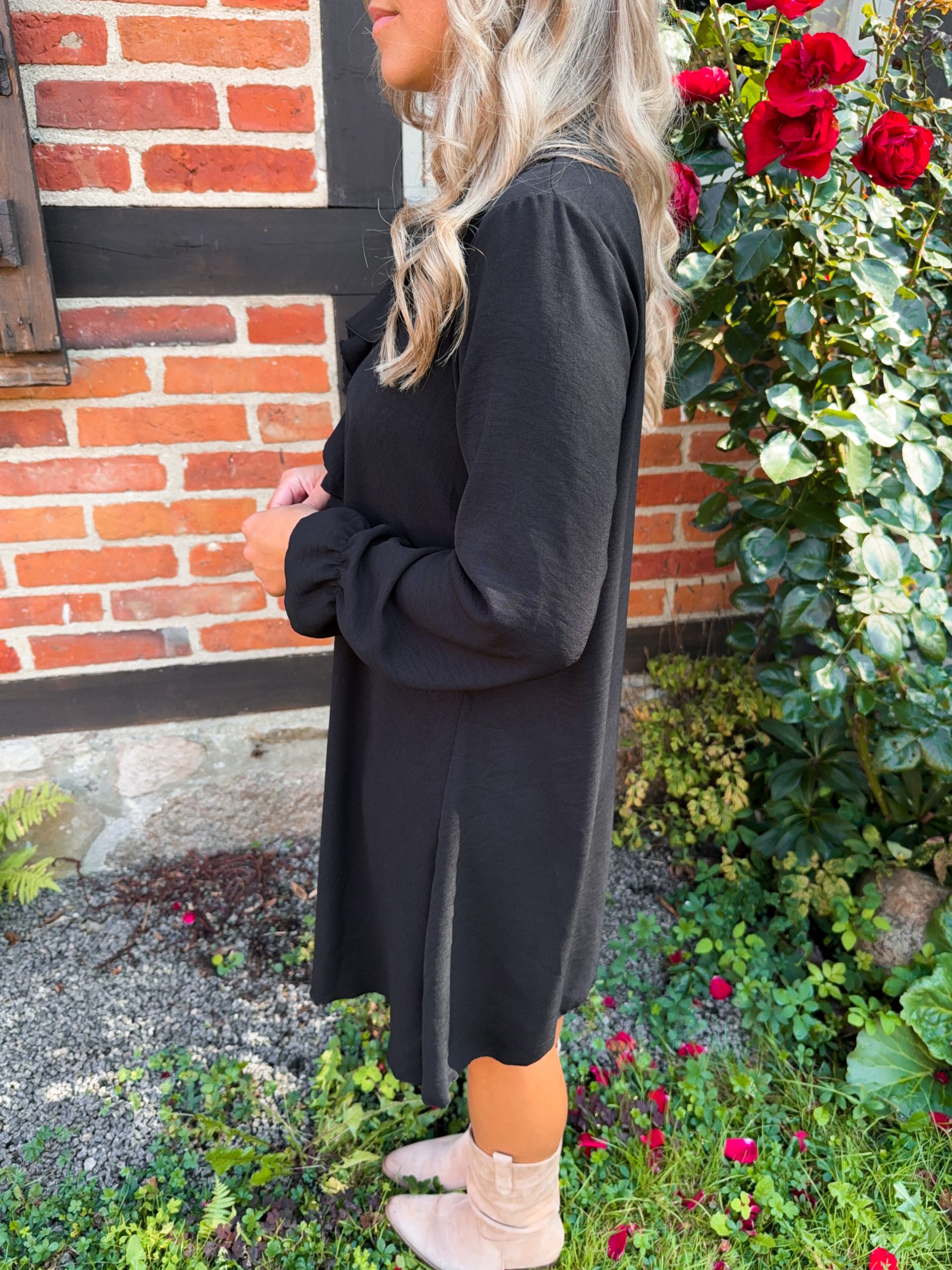En läcker tunika med volang. Från Cosy House. Modellen är 163cm lång.